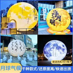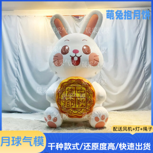 新款充气月球兔子月饼气模中秋大型发光月亮玉兔灯笼景区商场活动