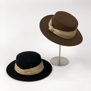 秋冬平顶毛呢礼帽女英伦复古名媛缎带韩版百搭显脸小秋冬时尚帽子