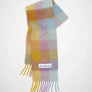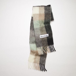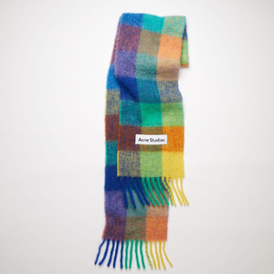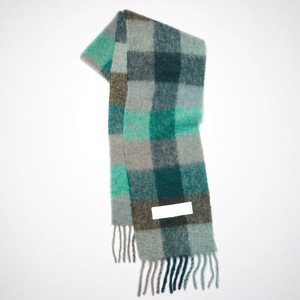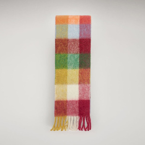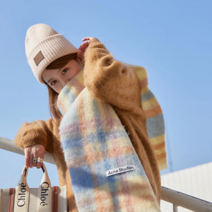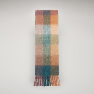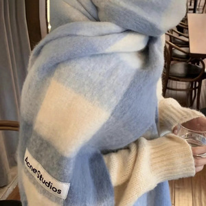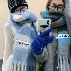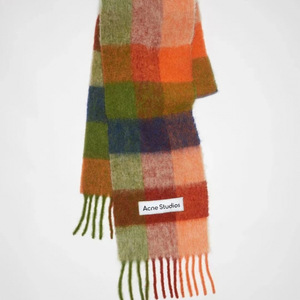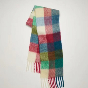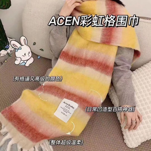 秋冬新款加厚保暖彩虹色格子围巾欧美圈圈纱粗流苏拼色披肩