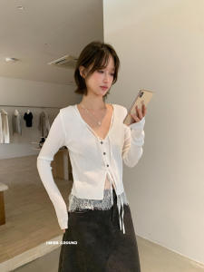 IMISS 2025秋装纯欲风绝美蕾丝拼接假两件系带长袖针织开衫H01178
