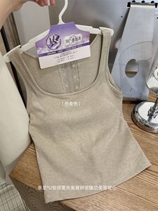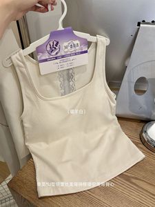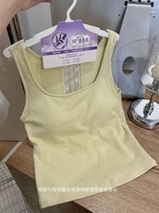 幸觅纯欲露背带胸垫背心蕾丝螺纹棉固定杯美背修身磨毛内搭外跨境
