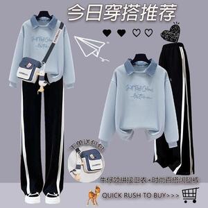蓝色卫衣+黑白阔腿裤送包 02795