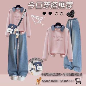 粉色卫衣+牛仔裤1送包 02795