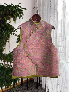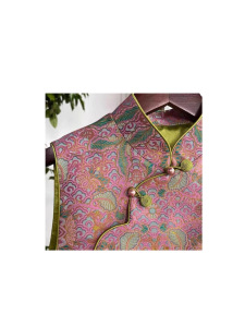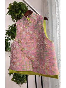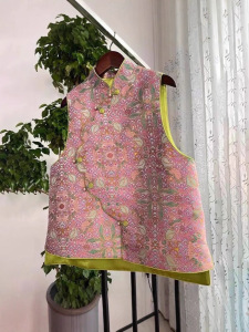 新中式国风高级超好看粉色印花斜襟盘扣马甲外套女秋冬25新款大码