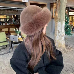 跨境毛绒蒙古帽子女加厚秋冬季防风防寒保暖盆帽仿貂毛护耳渔夫帽
