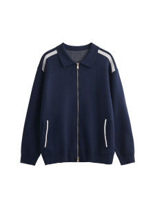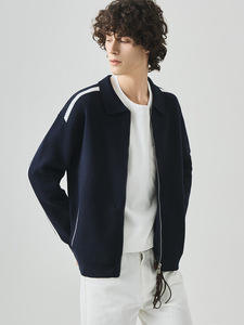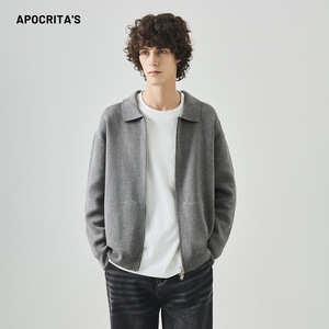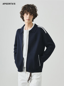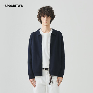 APO男装|跨境慵懒老钱风针织毛衣男士秋冬季宽松撞色拉链开衫外套
