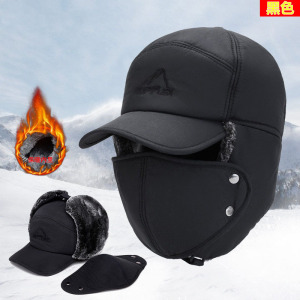 秋冬季加绒冰山峰雷锋帽男士中老年人户外骑车加厚保暖防寒棉帽子