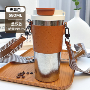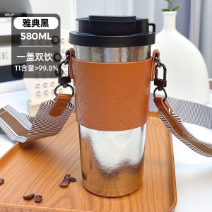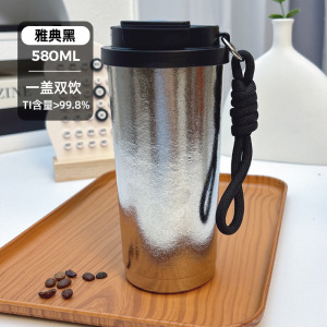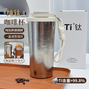 双层纯钛保温杯大容量水杯女生高颜值钛杯便携双饮咖啡杯带吸管杯
