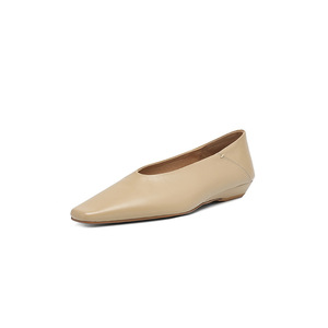 简约百搭低跟女单鞋2025秋季新方头羊皮浅口一脚蹬通勤舒适小皮鞋