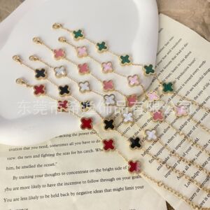 热销爆款钛钢四叶草平面手链18K四叶草手链跨境高级手饰品工厂批