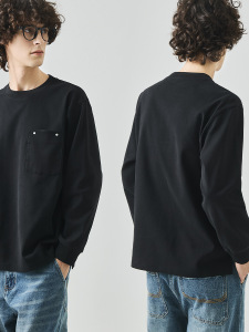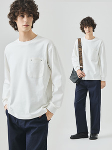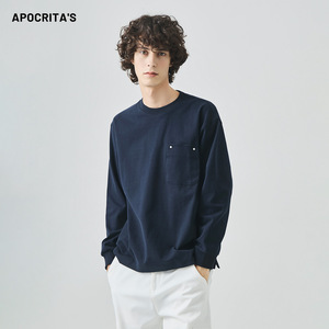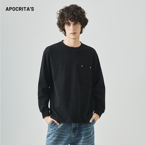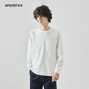 APO男装 |跨境男士长袖T恤春秋季宽松休闲磨毛白色内搭上衣打底衫