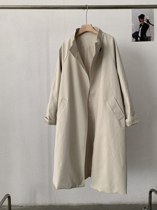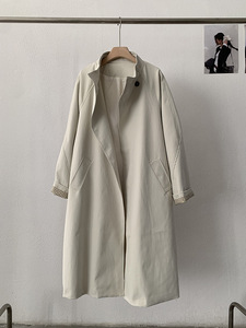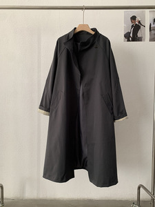 欧玛莱 韩系立领一粒扣简约设计感长款风衣外套收腰绑带大衣 4424