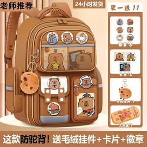 卡皮巴拉水豚小学生书包儿童书包一二三四五六年级可爱减负双肩包