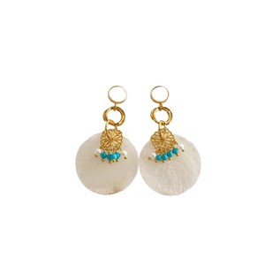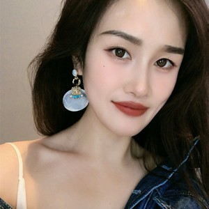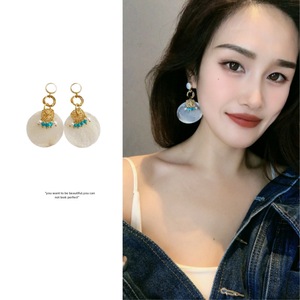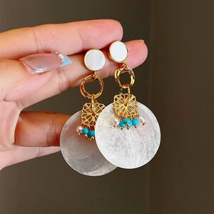 复古绿松石贝壳片长耳环高级感镀真金度假风夸张气质耳饰品