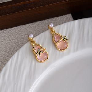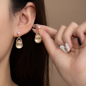 银针国风葫芦珍珠耳环女新中式超仙氛围感耳钉时尚设计感小众耳饰