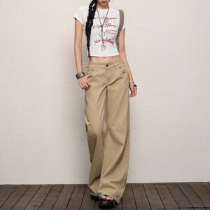 卡其色微喇牛仔裤女新款夏季美式辣妹低腰显瘦宽松垂感拖地裤批发