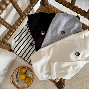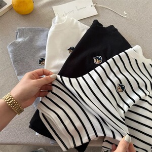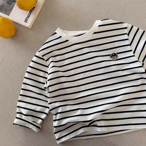 儿童长袖T恤2025春秋男童日系卡通小熊T宝宝小童秋款条纹打底衫潮