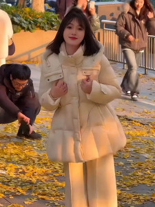 轻柔2025冬季新韩版宽松连帽泡芙羽绒服女中长款加厚白鸭绒外套