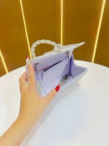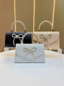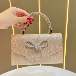 高级感宴会包礼服百搭手拿包时尚镶钻蝴蝶结晚宴包亮片欧美链条包