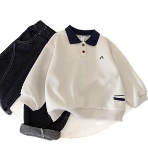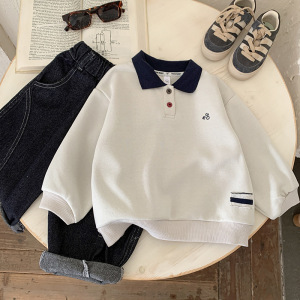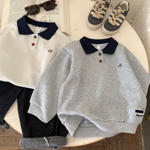 男童POLO衫卫衣2025秋装新品儿童纯色翻领上衣宝宝学院风套头衫