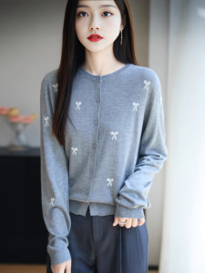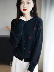 针织开衫女25早秋新款精纺外套宽松显瘦百搭上衣