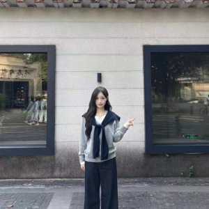 套装女2025秋季新款韩系慵懒风长袖针织衫系带披肩高腰显瘦阔腿裤