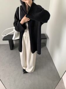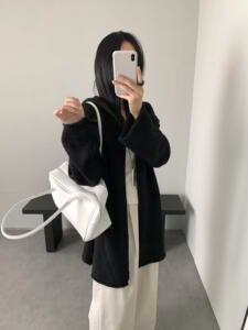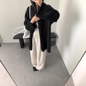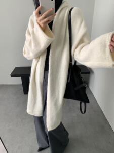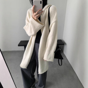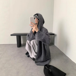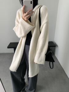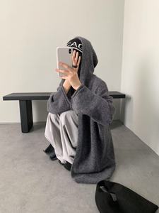 2025秋冬新款连帽针织宽松慵懒风开衫毛衣外套百搭简约卷边上衣