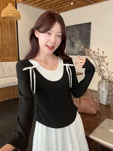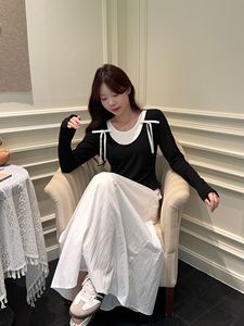 2025秋季新款胖mm大码赫本风气质显瘦蝴蝶结T恤连衣裙两件套