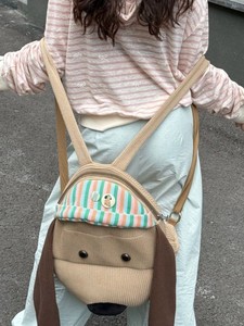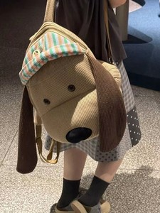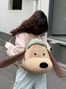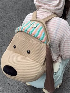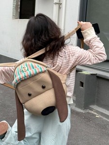 新款ins风可爱卡通小狗条纹双肩包百搭洋气背包外出轻便通勤书包