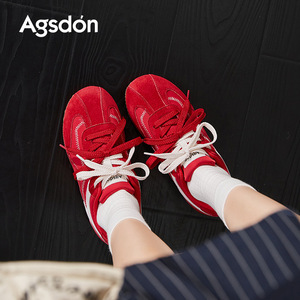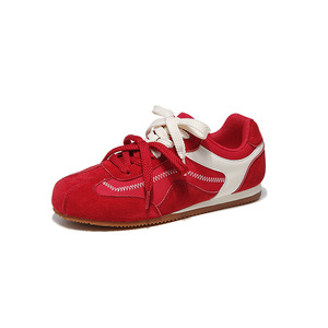 奥古狮登红色德训鞋女2025新款秋季运动休闲鞋配裙子芭蕾阿甘板鞋