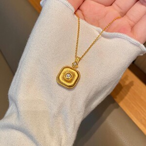 沙金饰品福运平安扣方形吊坠项链女仿黄金小众轻奢高级感久不掉色
