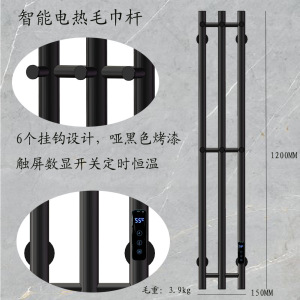 电热毛巾架不锈钢竖杆枪灰色加热毛巾架定时恒温带6个挂钩浴巾架