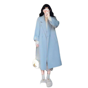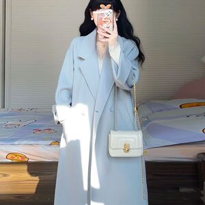 韩系高级感蓝色呢子大衣女秋冬季2025新爆款小个子毛呢外套中长款