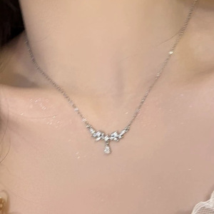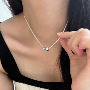 碎银小方块小众设计感珍珠项链女百搭925纯银锁骨链不掉色配饰女