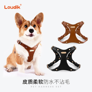 Dego批发柔软皮质狗狗宠物胸背带牵引绳遛狗绳柯基中小型犬跨境