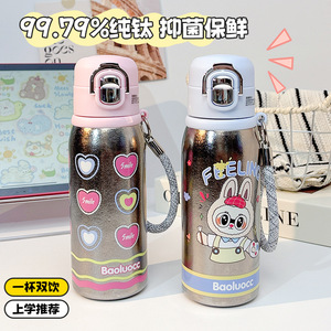 新款纯钛杯可爱儿童保温杯大容量水杯轻奢高级感纯钛保温杯吸管杯