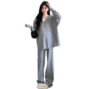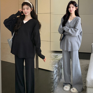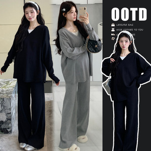 孕妇装秋装假两件设计感新款套装慵懒风孕妇套装