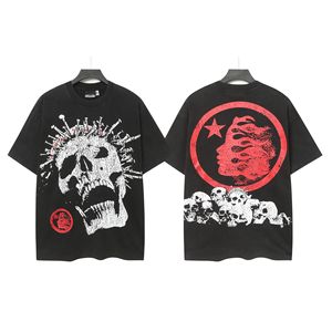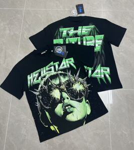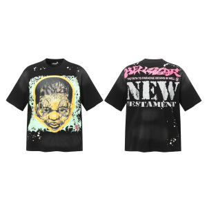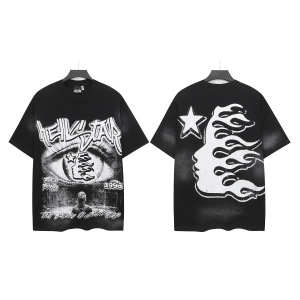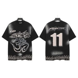 美式潮牌街头地狱之星高街休闲宽松圆领T恤印花做旧短袖外贸现货