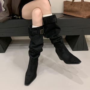 大筒围欧美辣妹风两穿长筒靴时尚尖头复古西部机车褶皱堆堆靴