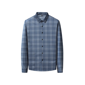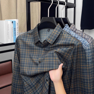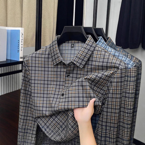 一件代发绵羊毛桑蚕丝经典格子衬衫秋季翻领百搭衬衣男士长袖上衣