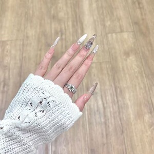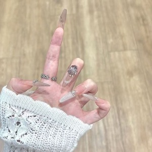气质仙女美甲透裸色穿戴甲法式猫眼奢华大钻长款细狗美甲纯手工