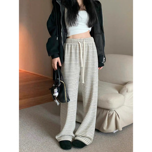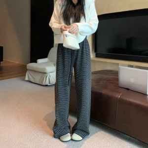慵懒感条纹直筒遛弯裤垂感毛巾裤女秋季加厚垂感休闲羊绒阔腿裤