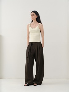 someone 老钱垂感廓形宽腰带拼接绑带工字褶阔腿西装裤