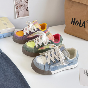蓓尔美式女鞋增高时尚系带小白鞋2025学生休闲阿甘运动鞋BE-6915