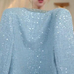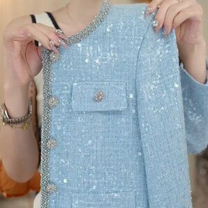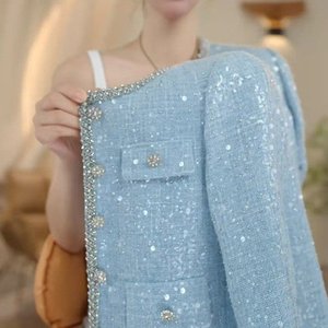 一件代发2025秋季新款重工百搭时尚洋气名媛风气质蓝色小香风外套