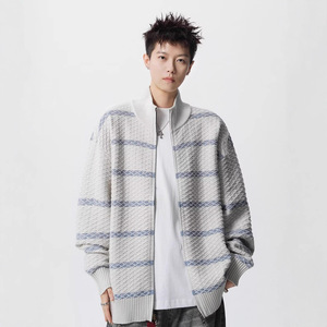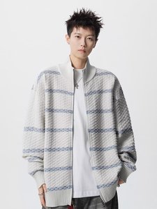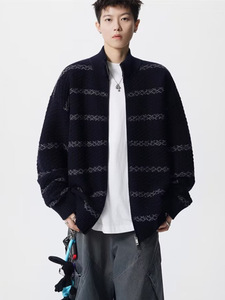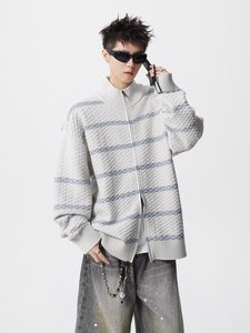 美式潮牌痞帅宽松立领针织开衫男女款秋季韩系慵懒松弛感针织上衣