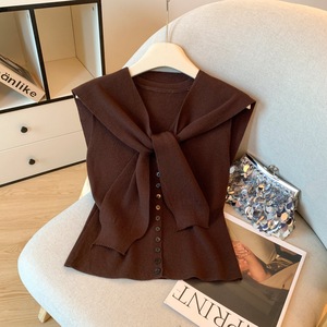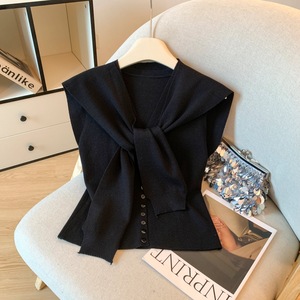 广州十三行高货爆款~早秋款披肩针织衫女刺绣马甲毛衣背心两件套