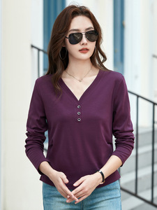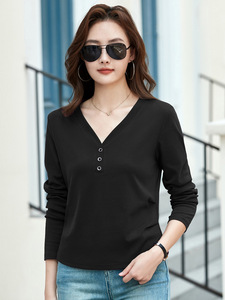 榆炜2888#v领长袖t恤女2025新款春秋季百搭外穿洋气上衣女士修身