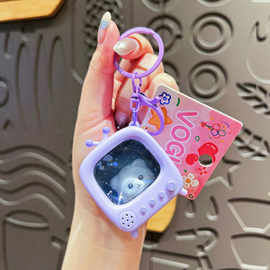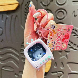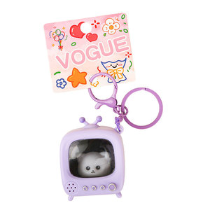 创意发光猫咪电视机钥匙扣链可爱卡通趣味女生包包挂件小礼品批发