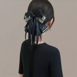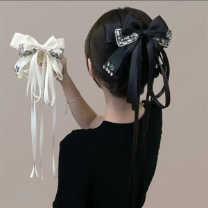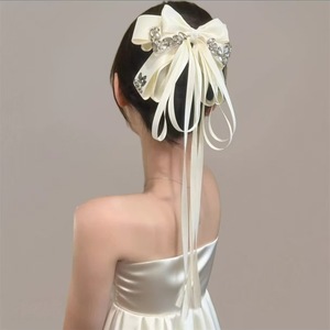 轻奢高级感闪钻多层蝴蝶结长飘带抓夹甜美时尚马尾夹半扎发夹头花